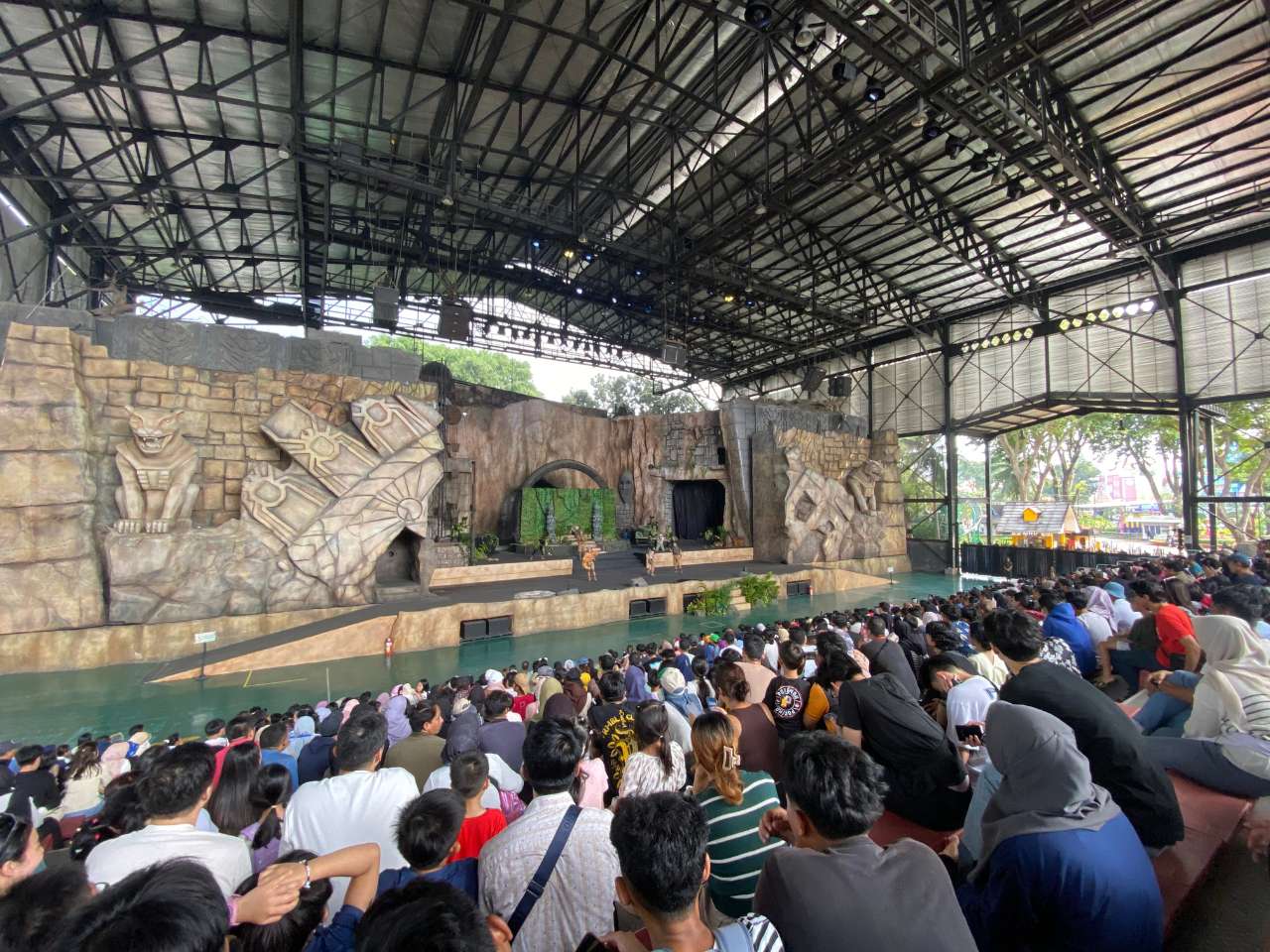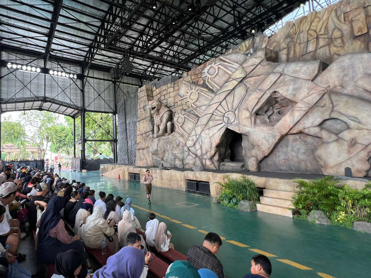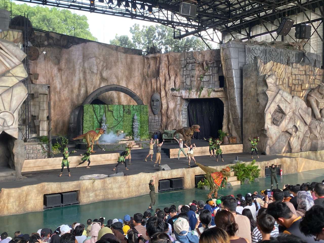 Dufan menghadirkan kembali aksi panggung interaktif yang memadukan teknologi animatronik canggih, efek suara yang menghentak, dan dinosaurus raksasa yang seolah hidup kembali di depan mata.