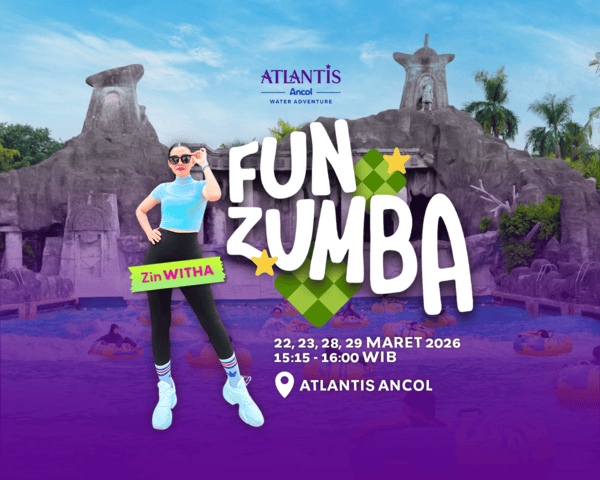 Berlokasi di Kolam Tanding Atlantis Ancol, pengunjung dapat merasakan sensasi unik mengikuti zumba langsung di dalam air. Gerakan yang dinamis dipandu langsung oleh ZIN Witha, instruktur zumba yang siap mengajak seluruh peserta untuk bergerak, tertawa, dan menikmati suasana liburan yang penuh energi. Fun Zumba tidak hanya menjadi aktivitas olahraga, tetapi juga pengalaman rekreasi yang menyenangkan bersama keluarga maupun teman.