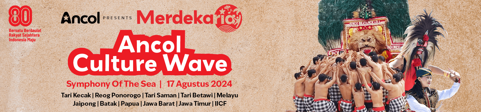 Ancol Culture Wave menampilkan keberagaman tarian tradisional Indonesia yang mendunia. Parade budaya ini menonjolkan kekayaan warisan budaya dari berbagai daerah: dari Bali, Aceh, Sumatera, hingga Papua. Pertunjukan di Symphony Of The Sea memberikan nuansa panggung terbuka yang memadukan musik, gerak, dan visual spektakuler. Bagi penikmat budaya, acara ini menjadi momen kilas balik yang edukatif sekaligus mengesankan.