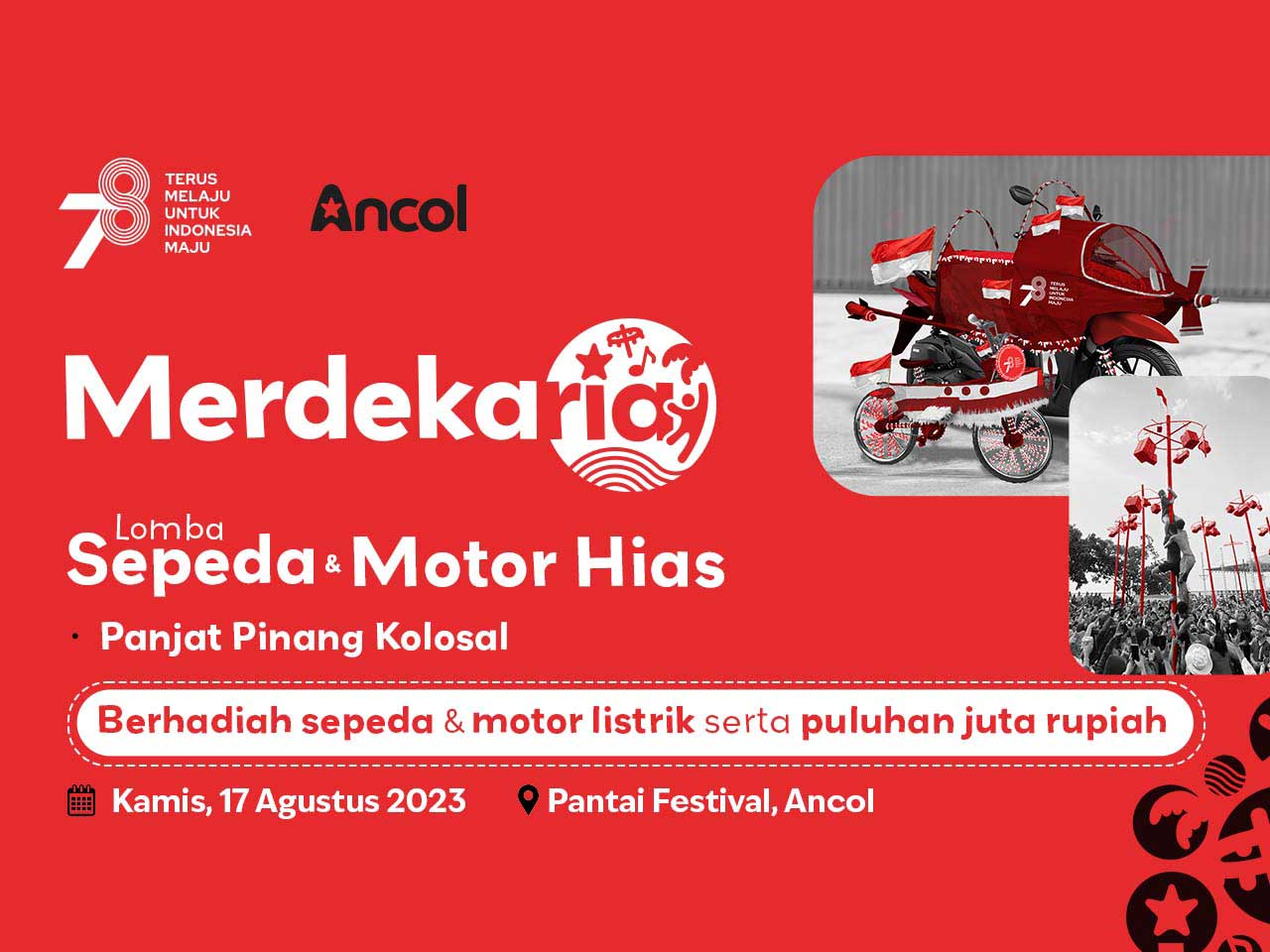 Dalam rangka menyambut Hari Kemerdekaan Indonesia, tempat wisata Ancol menggelar perlombaan khusus pada 17 Agustus. Berikut rekomendasi acara / event 17 Agustus di Jakarta yang diselenggarakan di Ancol :Â
