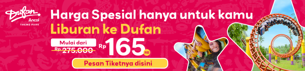 Liburan seru di Dunia Fantasi (Dufan) Ancol kini semakin terjangkau! Nikmati dengan harga mulai dari 165ribu untuk tiket masuk Dufan dan rasakan pengalaman tak terlupakan di berbagai wahana seru. Baik Anda ingin merasakan sensasi adrenaline di wahana ekstrem atau menikmati hiburan keluarga, Dufan merupakan tempat yang tepat untuk menghabiskan liburan yang seru. Jangan lewatkan kesempatan langka ini untuk berlibur hemat bersama keluarga atau teman-teman!