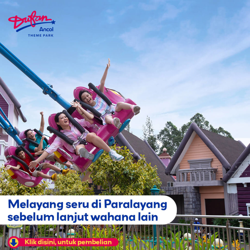 Paralayang di Dufan Ancol adalah sebuah wahana yang memberikan sensasi seperti terbang dengan paralayang sungguhan. Wahana ini memungkinkan pengunjung untuk merasakan terbang mengambang di udara sambil menikmati pemandangan sekitar. Dengan kursi yang tergantung pada besi yang kuat dan aman, pengunjung akan ditarik perlahan ke atas dan bergerak memutar ringan.