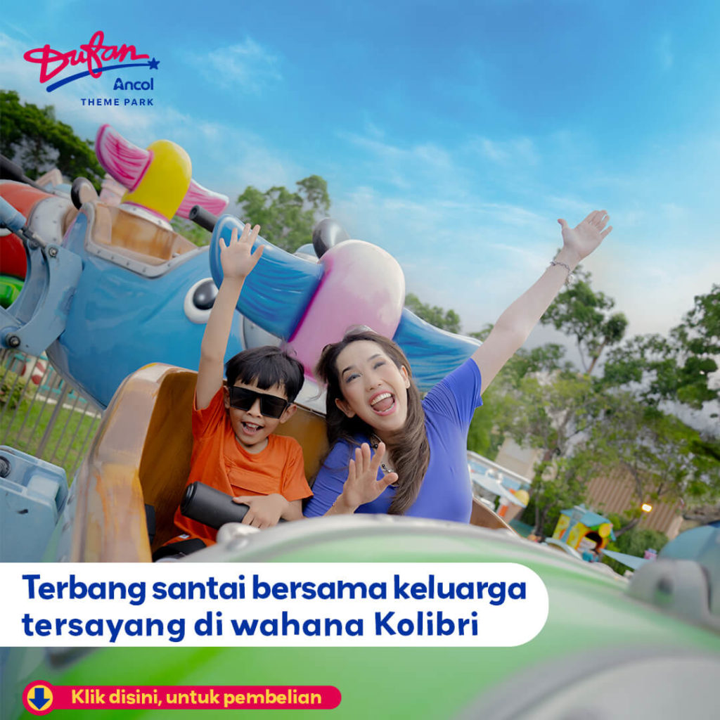 Kolibri Dufan adalah wahana yang terinspirasi dari burung Kolibri yang lincah dan bisa melayang di udara. Wahana ini dirancang khusus untuk memberikan sensasi terbang santai dengan menggunakan kursi yang tergantung dan berputar lembut mengikuti alur musik dan lampu yang menarik. Ini cocok untuk semua keluarga, termasuk anak-anak dan orang dewasa yang ingin merasakan keseruan terbang sambil menikmati pemandangan indah sekitar wahana dari ketinggian.