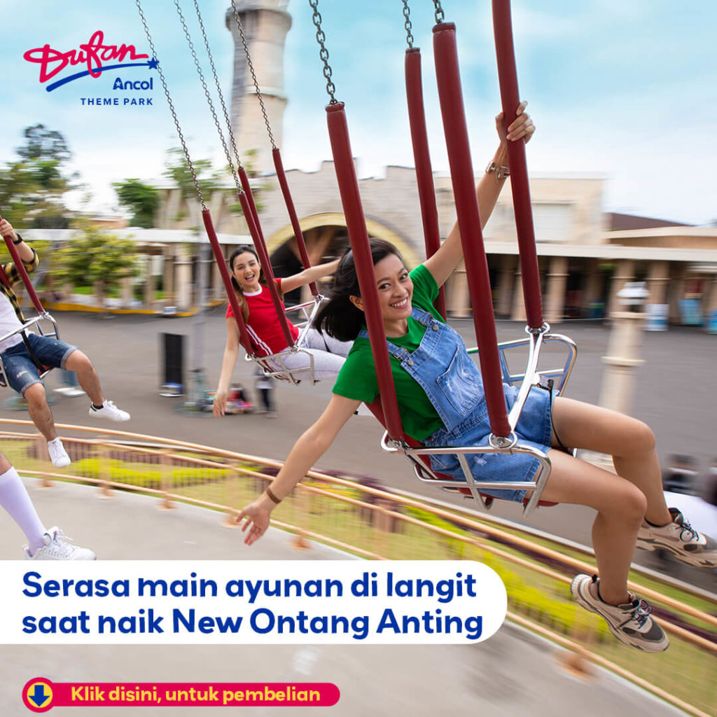 New Ontang Anting adalah wahana yang menggabungkan sensasi terbang dengan sensasi bermain ayunan di udara. Wahana ini akan membawa kita terbang berputar hingga tinggi di udara, membangkitkan rasa adrenalin dan tidak sedikit yang tidak berani membuka mata saat menaiki wahana ini. New Ontang Anting adalah wahana yang sempurna bagi siapapun yang ingin merasakan kebebasan terbang sambil menikmati semilir angin.