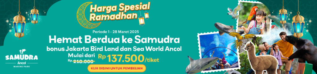 Samudra Ancol adalah tempat ngabuburit seru yang menawarkan pengalaman edukatif dan menghibur bagi semua usia. Dengan berbagai atraksi menarik seperti Mola-Mola, Istana Penguin, dan Dolphin Bay, Anda dan keluarga dapat menikmati waktu berkualitas sambil belajar tentang kehidupan satwa. Jangan lewatkan kesempatan untuk merasakan pengalaman ngabuburit yang berbeda dan menyenangkan di Samudra Ancol. Dapatkan tiketnya sekarang di website ancol.com dan siapkan diri Anda untuk petualangan seru di Samudra Ancol!