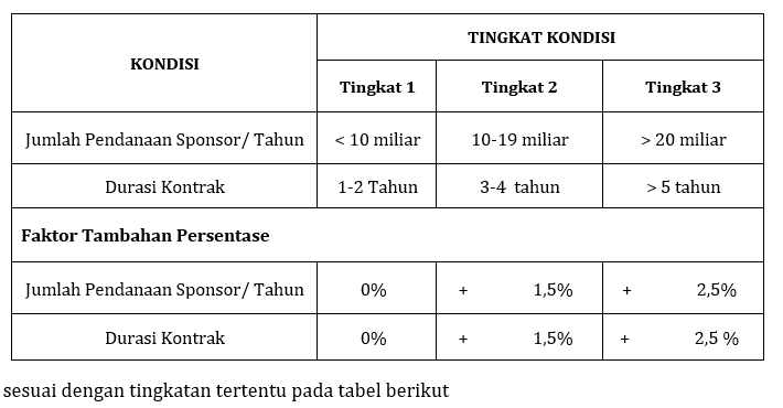 Rentang target nilai kerjasama dan biaya yang akan dibayarkan mengacu pada poin E mengenai Imbalan Jasa Kerjasama;